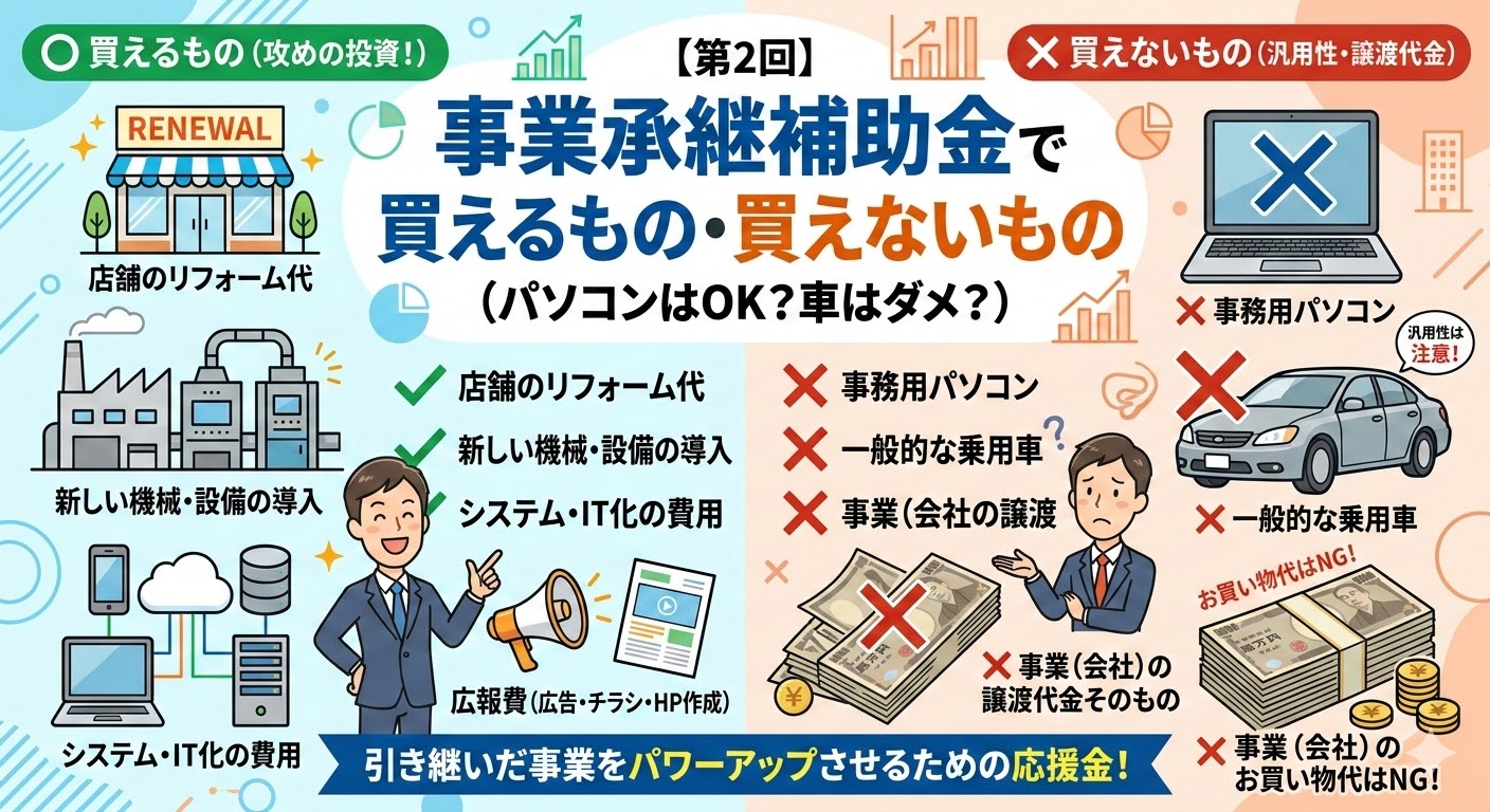 【第2回】パソコンはOK?車はダメ?「事業承継補助金」で買えるもの・買えないもの